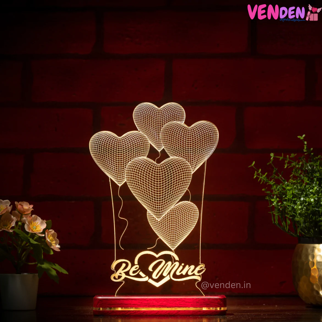 “Be Mine” Heart Balloons 3D Illusion Lamp – Insperia