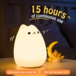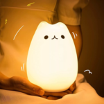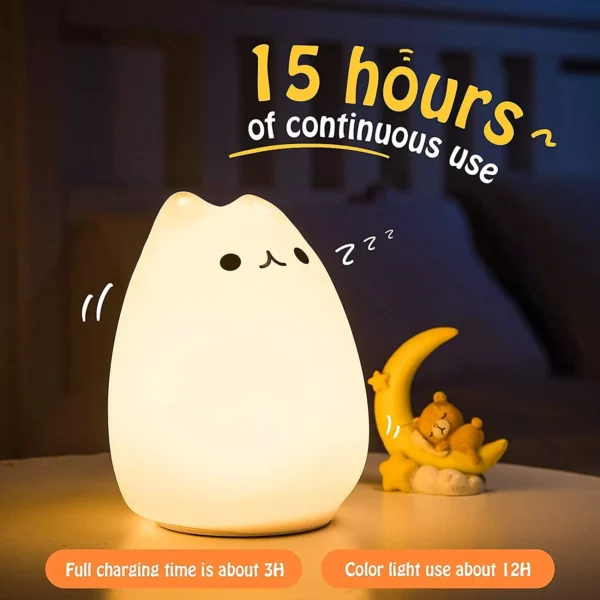 2) TAP CONTROL&DUAL LIGHT MODES: Children/Lover’s Night Lighting, Tap the soft silicone surface to switch among normal WHITE/WARM light mode, 7-color breathing light mode and standby mode, making it a romantic sweet nursery baby night lamp companion and it is easy to use as Bedside night lights.