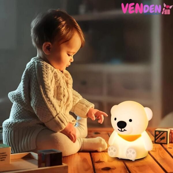 Introducing the Cute Bear Silicone Night Light, a grateful addition to your living space that brings both cuteness and functionality together. Crafted from high-quality materials, this lovely lamp is not just a source of light but a captivating decorative piece. Its cute and lovely design is truly eye-catching, instantly adding extra brightness and a touch of whimsy to your bedroom or living room.