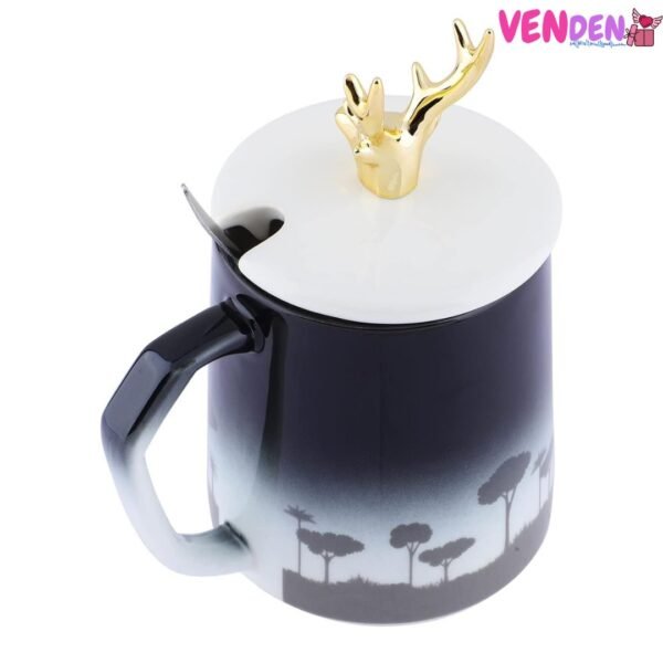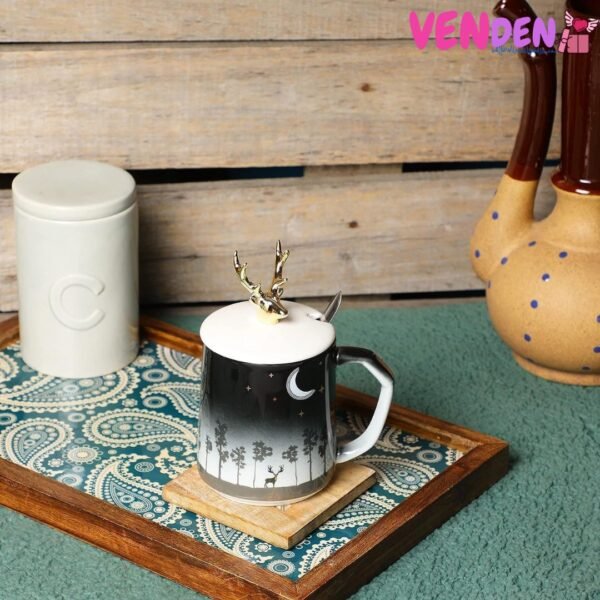 Deer Coffee Mug with Golden Deer Lid & Spoon – Insperia