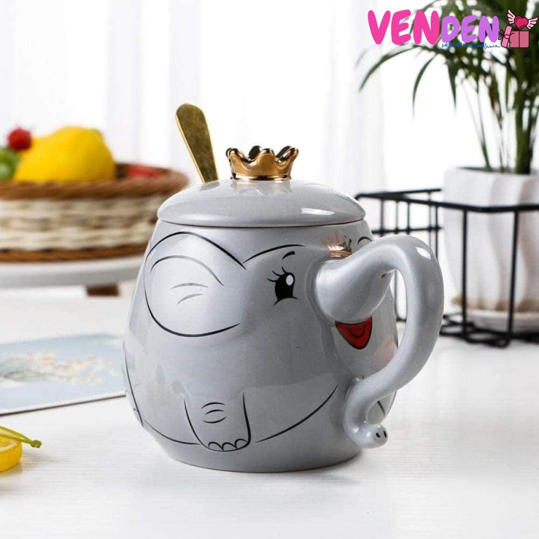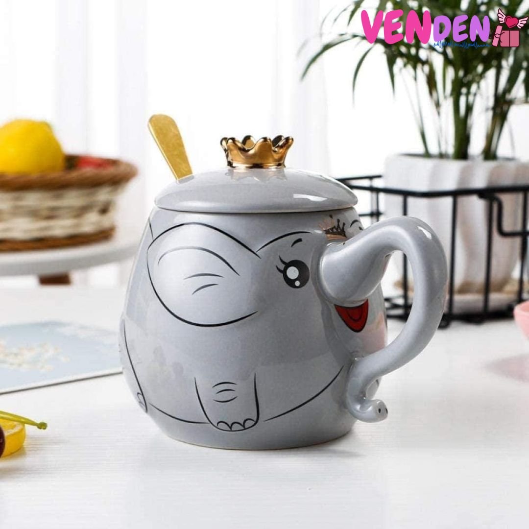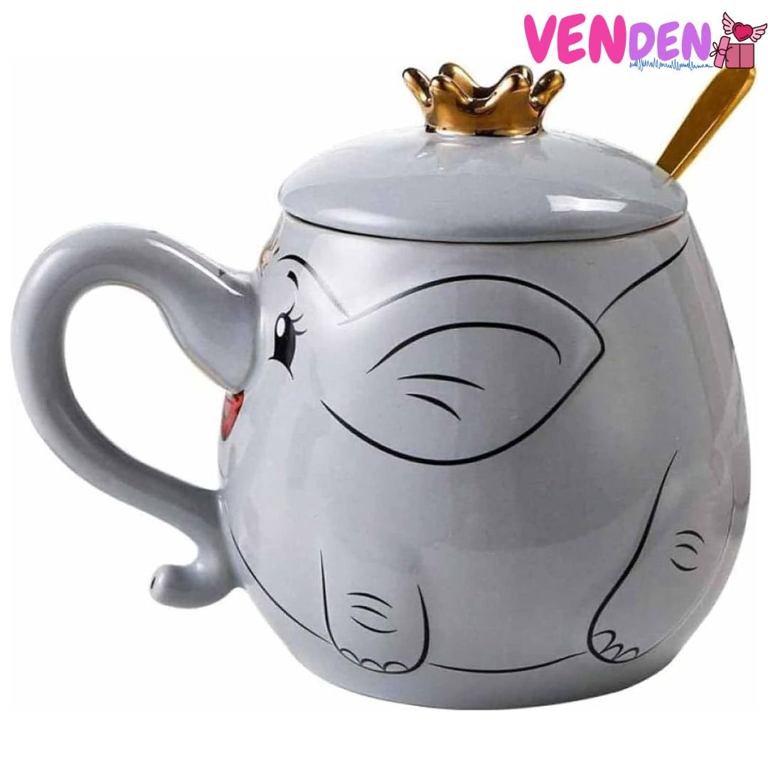Elephant Coffee Mug with Lid & Spoon – Insperia