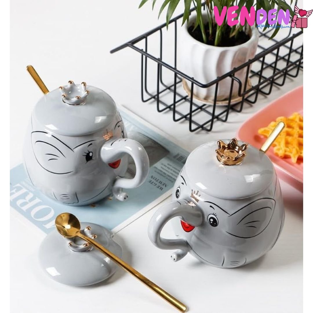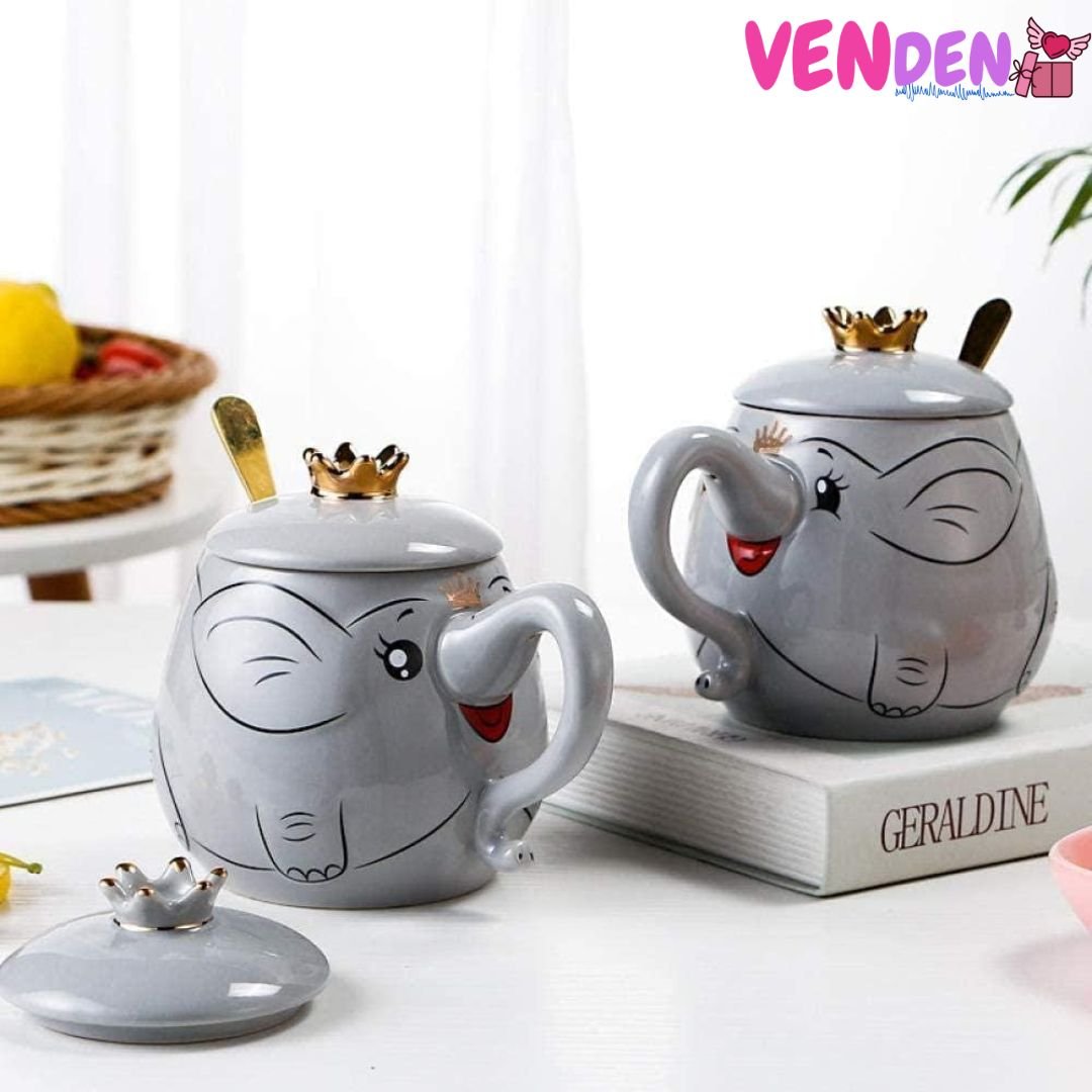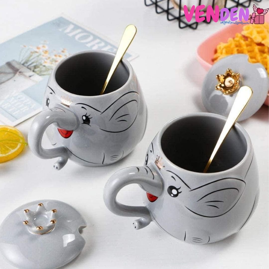 Elephant Coffee Mug with Lid & Spoon – Insperia