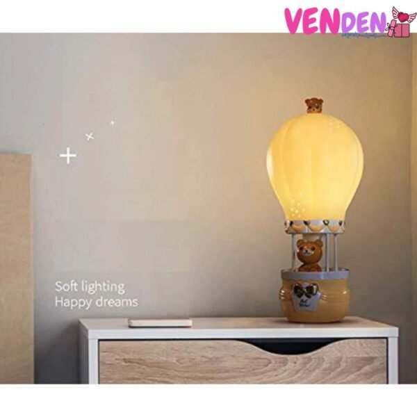The night light features a charming hot air balloon shape adorned with a cute bear design. It not only provides gentle illumination but also serves as an appealing decoration in any bedroom. It makes for the perfect gift for your children or friends.
